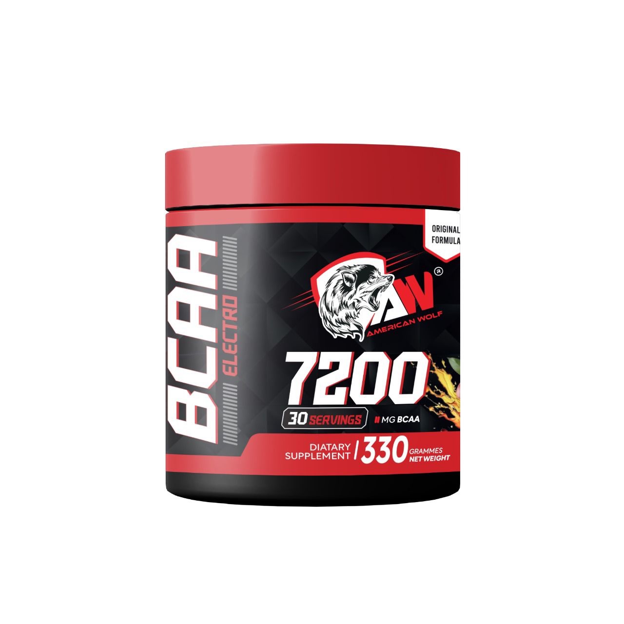 Chaque portion de 11 g de BCAA 7200 d’American Wolf contient un total impressionnant de 7200 mg de BCAA :