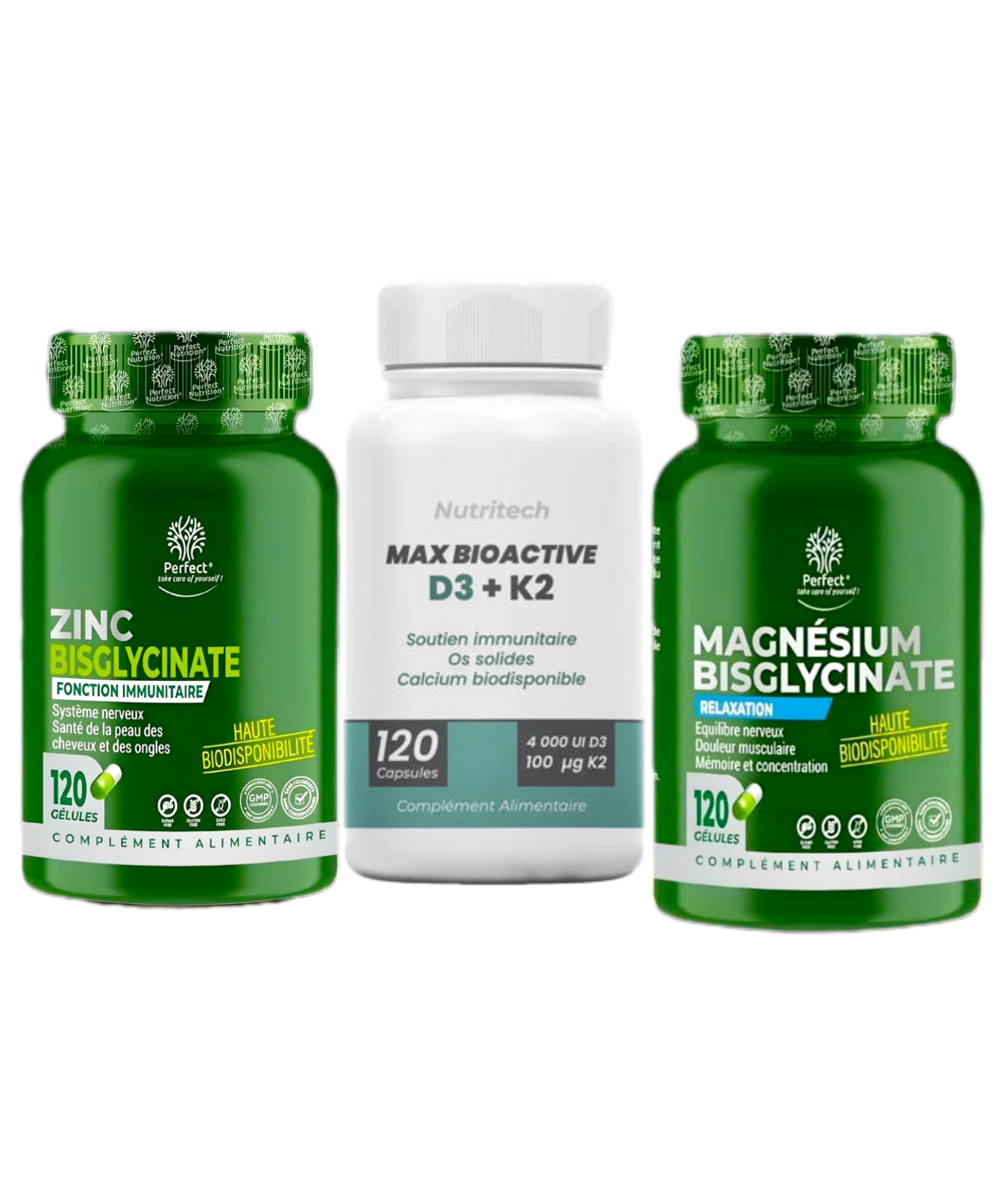 Vitamine D3 K2 60 Capsules Tunisie nutritech +Magnésium Bisglycinate – 120 capsules perfect +Zinc Bisglycinate – 120 capsules perfect Vitamine D3 K2 60 Capsules Tunisie – Ce p…